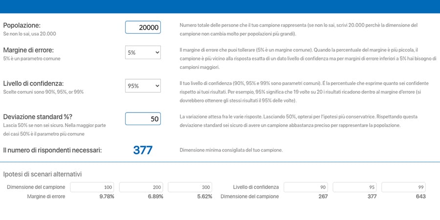 - The population: that is, how many people fall into the demographic group you want to study. For example, for a study about people who drink coffee in Italy, the size of your population will be the total number of people who drink coffee in Italy. Keep in mind that this number is often indicative and not precise.