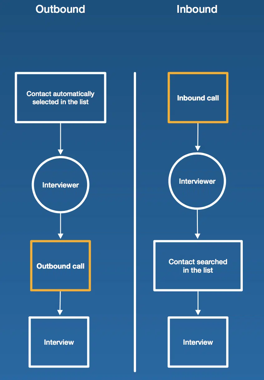 Outbound. Some specific surveys may require a different method to allow respondents to reach the call center.