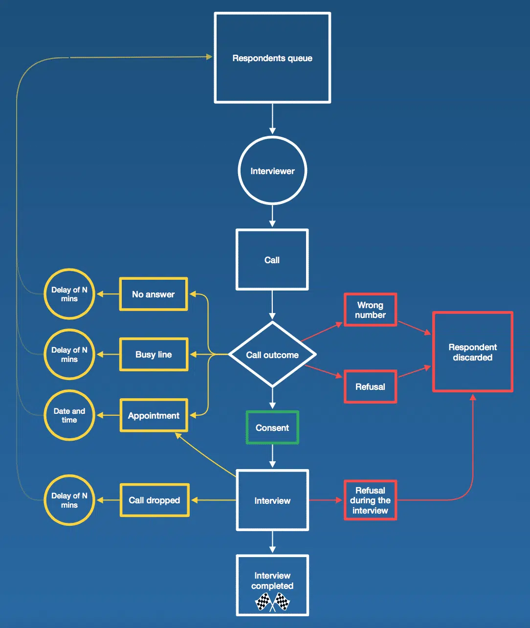 The questionnaire is not just a guideline but a tool to automatically lead the questionnaire flow and formulate questions. The role of the interviewer is that of an intermediary between the respondent and the questionnaire. Also, the interviewer can clarify questions to improve the response rate.