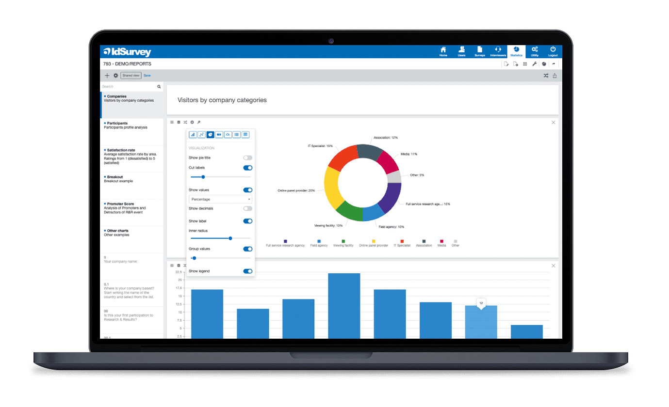 IdSurvey is a market research software designed to create and manage surveys for market research and data collection. It’s really flexible and allows you to choose the best strategy for business planning and new launch of products and services. In fact, the collected data are immediately available for the creation of statistics and reports. Design in depth interviews with IdSurvey advanced market research tools and collect primary information for your business. This is one of the many reasons why IdSurvey is the market research software that big or small businesses prefer to use.